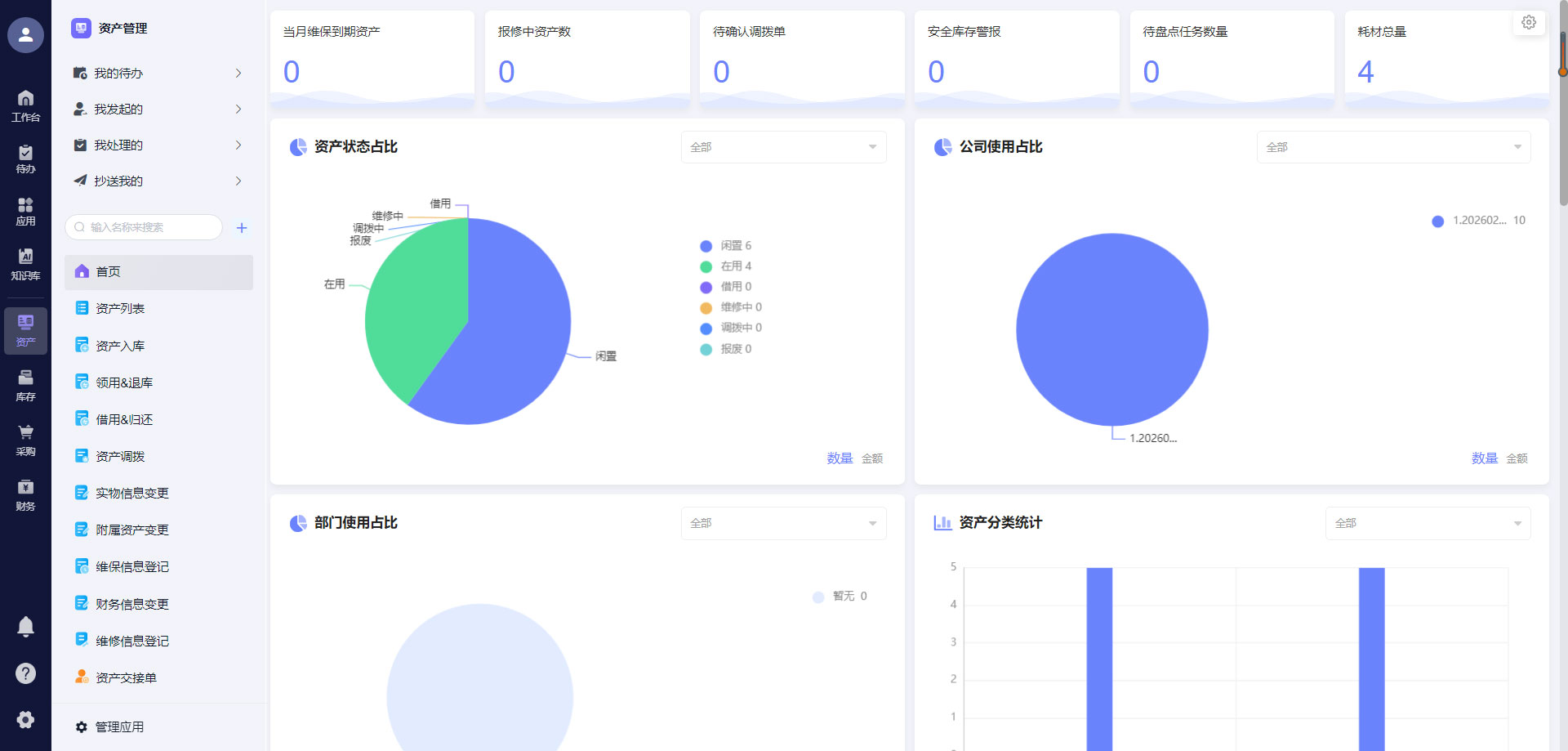 - 成本与合规管控强化:通过闲置资产匹配与耗材精细化管理,采购成本降低15%-20%;资产折旧、费用分摊自动化,财务核算效率提升80%,数据差错率降至0;全流程线上留痕与多系统集成,满足财务合规与审计要求。
