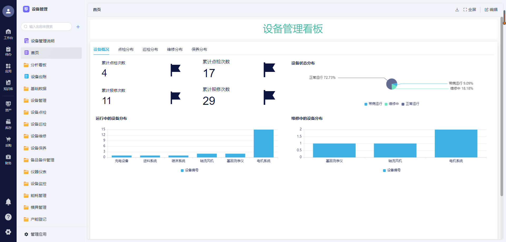 - 决策支撑更精准:多维度报表与数据看板实现资产设备状态、库存水平、成本消耗等信息实时可视化,管理层可快速掌握核心数据,决策精准度大幅提升。