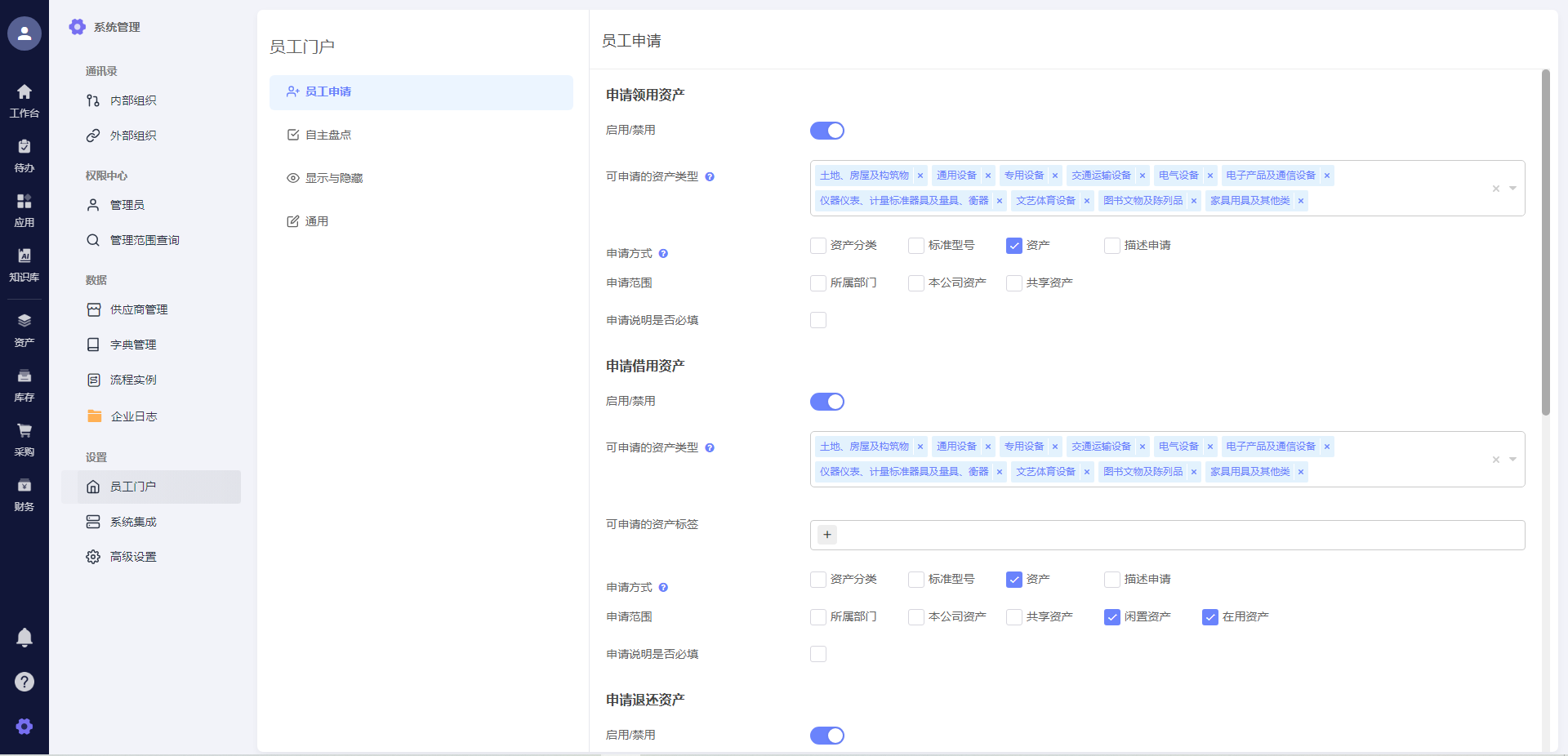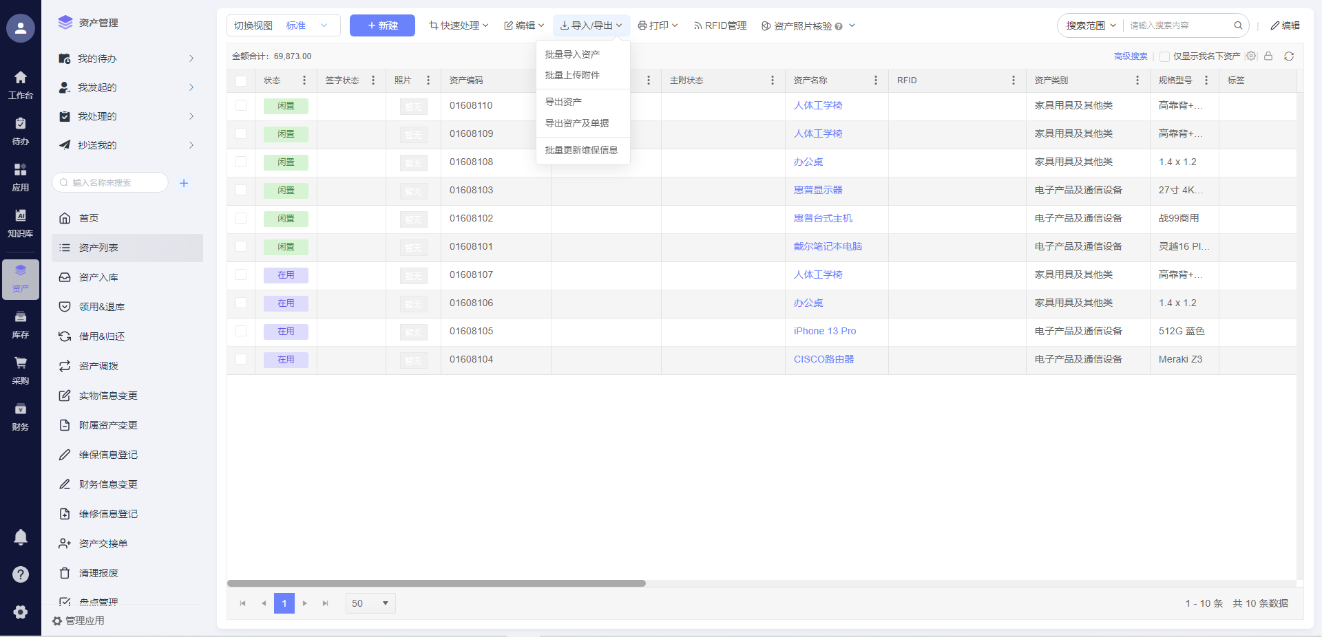 - 全场景管理覆盖:多品类资产的入账、变动流程实现标准化,新增、更新、增值、分割等场景均实现线上闭环,满足企业多样化管理需求。