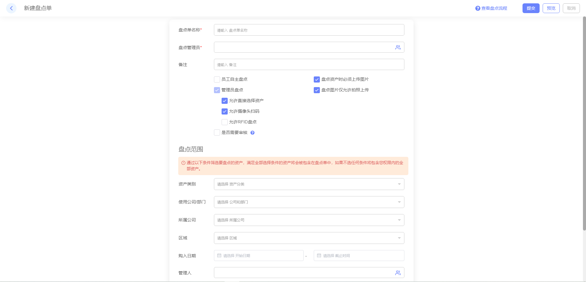 盘点功能,添加工模具盘点权限与专属功能,满足特殊资产盘点需求;支持移动端扫码盘点,结合一期照片留痕要求,提升盘点效率与准确性。