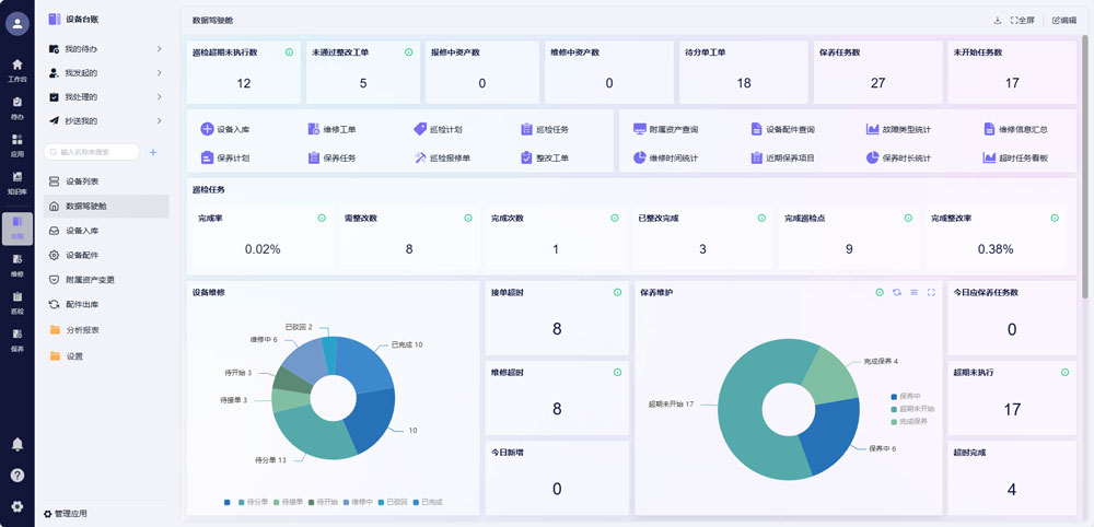 - 决策支撑能力增强:数据驾驶舱与多维度分析报表,直观呈现设备运行、维修、库存等核心数据,为管理层优化设备配置、提升供应链效率提供精准依据。