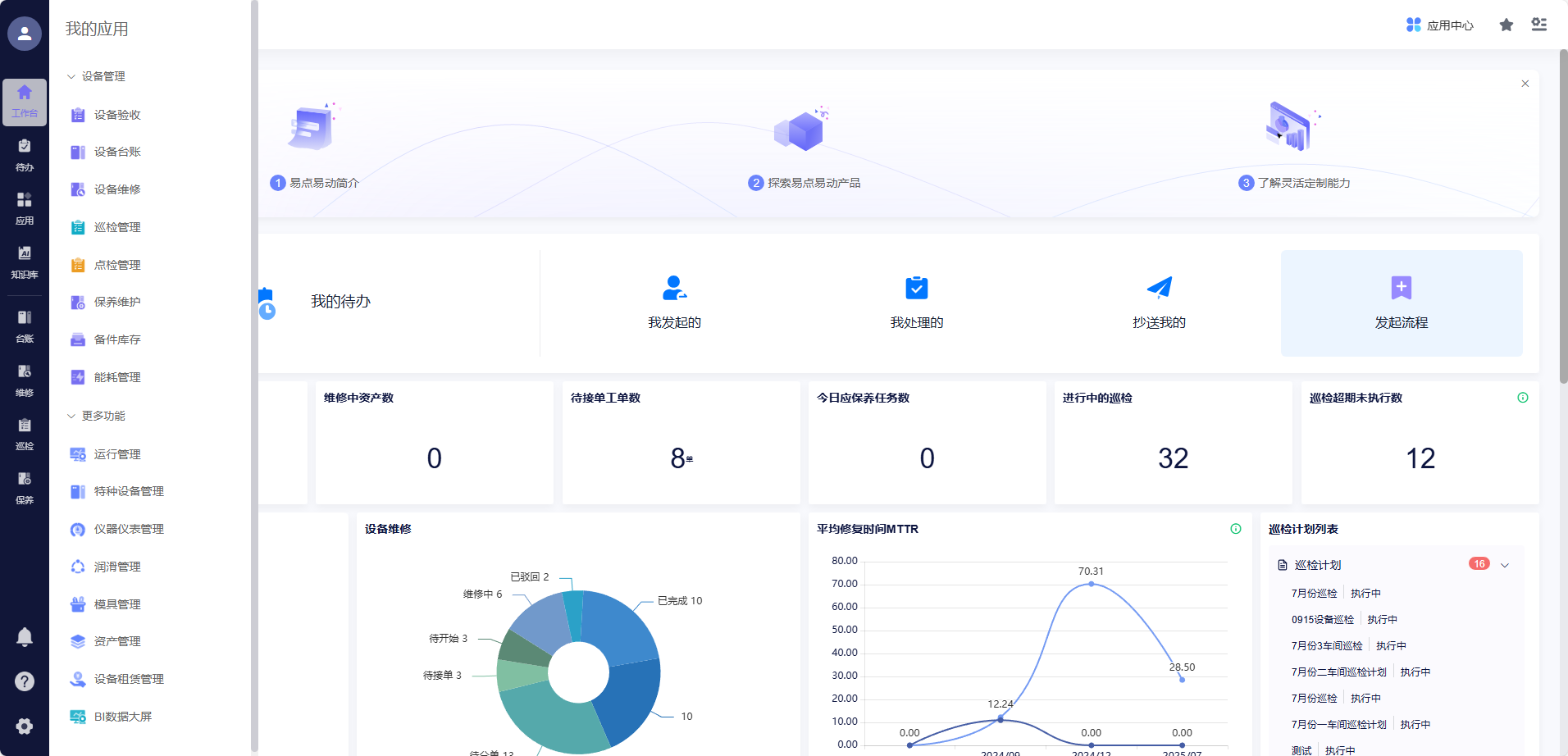 为破解上述困境,实现设备管理的数字化、规范化、高效化,满足医药行业合规要求与企业发展需求,正大天晴药业经过多轮调研对比,最终选择易点易动设备管理系统。双方携手打造覆盖设备台账、维修、巡检、保养、备件库存、专项管理等全场景的一体化管理平台,深度集成多系统,融入